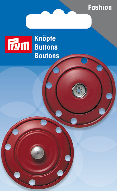 Кнопка пришивная, диаметр 35мм, металл с защитой от коррозии, темно-красный, 1пара в упаковке