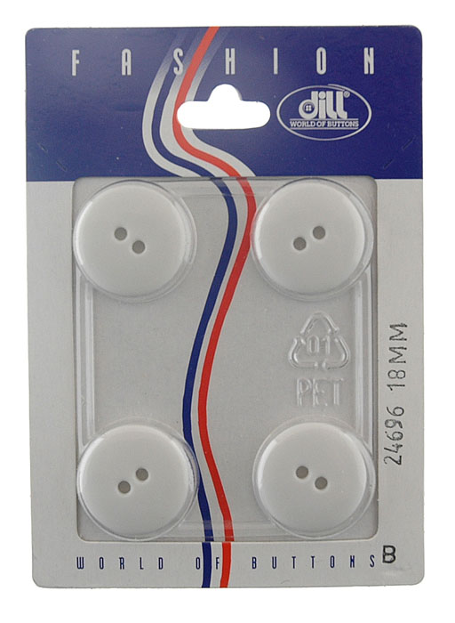 Пуговицы, размер 18мм, пластик, белый, 4шт в упаковке