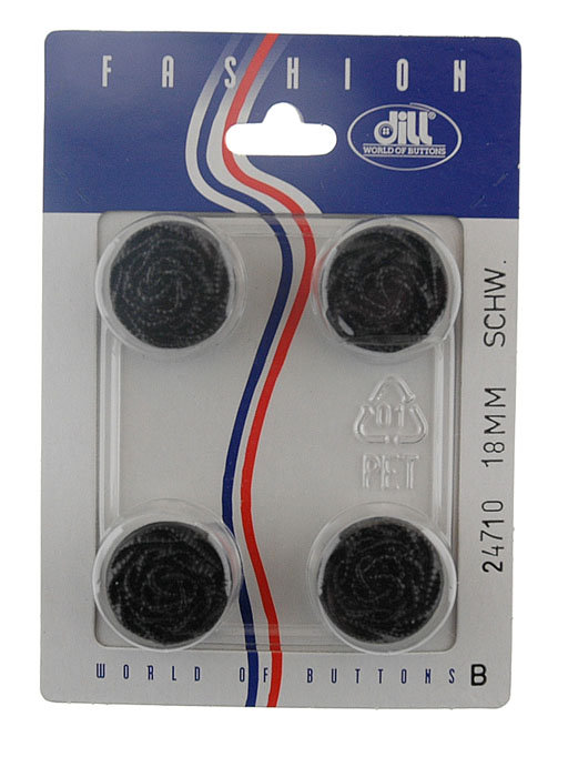 Пуговицы, размер 18мм, пластик, черный, 4шт в упаковке