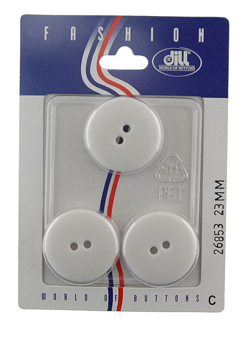 Пуговицы, размер 23мм, пластик, белый, 3шт в упаковке