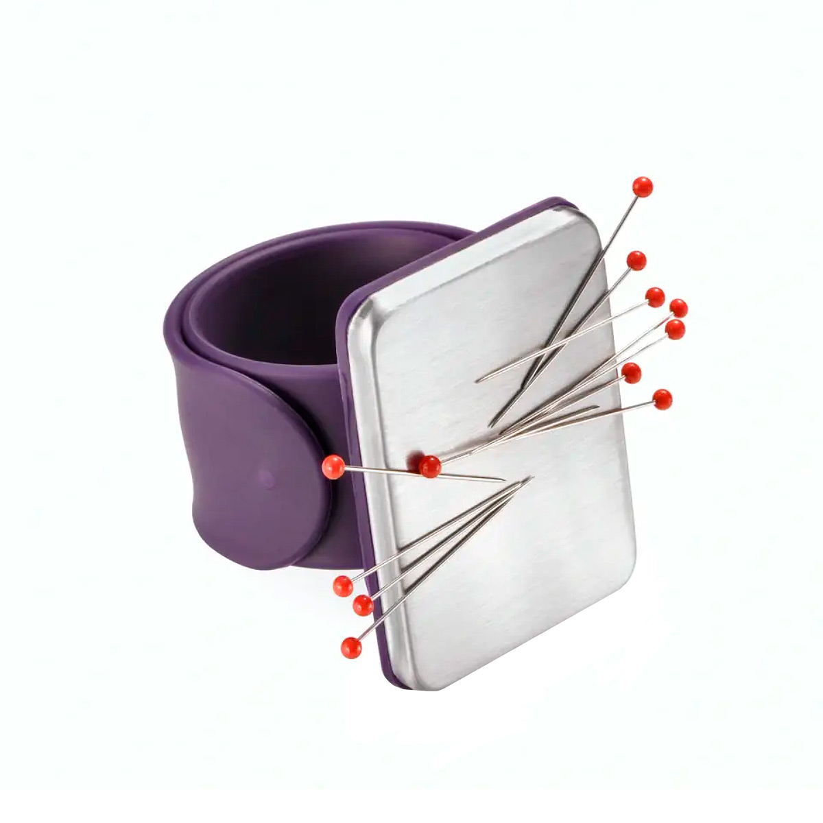 Практичнее не бывает: магнитная игольница на руку отныне делает рукоделие еще проще. С ее помощью можно удобно и безопасно хранить все необходимые принадлежности из металла, такие как булавки, швейные иглы или принадлежности для вязания спицами, которые необходимы для рукоделия. Это обеспечивает металлическая пластина из сатинированной нержавеющей стали с встроенным магнитом – а значит можно забыть о постоянном поиске мелких деталей. Браслет фиолетового цвета из высококачественного силикона гибок и оптимально подходит на любое запястье. Эта магнитная игольница на руку является настоящим преимуществом, когда речь идет о хранении металлических мелких деталей во время рукоделия!
