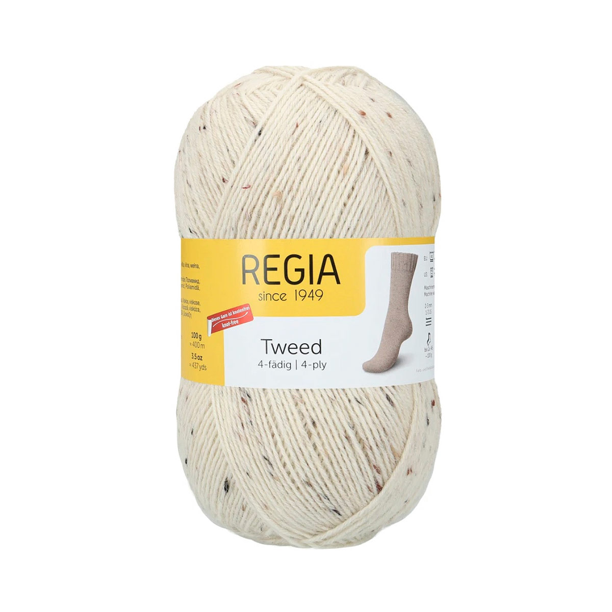 Пряжа Regia - премиальный материал, известный прочностью, износостойкостью и безупречной окраской. Regia Tweed - твидовая линейка пряжи которая сочетает в себе качество Regia и классическую «крапчатую» текстуру твида, что делает ее идеальной для уютных, стильных вещей в винтажном или скандинавском стиле.. Вы можете выбрать 4-ниточный или 6-ниточный твид.Твидовая пряжа обладает износостойкостью, уютной текстурой, мягкостью (мериносовая шерсть не колется), стойкостью цвета (не линяет при стирке). Она лучше всего смотрится в простой вязке, отлично держит форму, не скатывается. В красивых натуральных оттенках с благородной фактурой твид подходит для частой носки.Regia Tweed - отличный выбор для теплых и стильных вещей! Одного мотка пряжи хватит на носки до 46 размера, а для свитера того же размера потребуется 5 мотков.