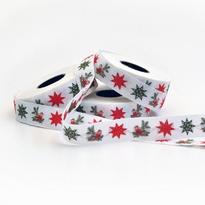 Тесьма декоративная "Малиновка и рождественские звезды", ширина 20мм, Acufactum,