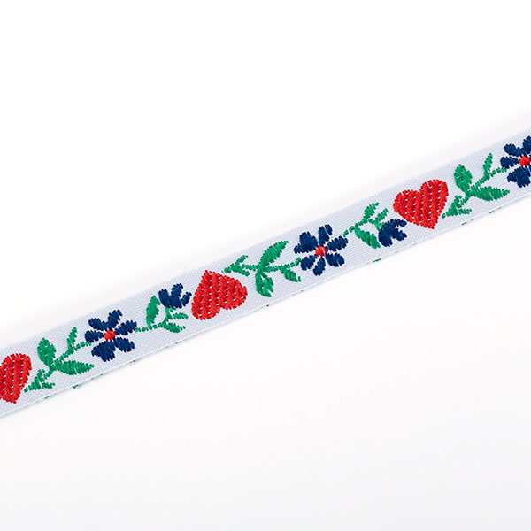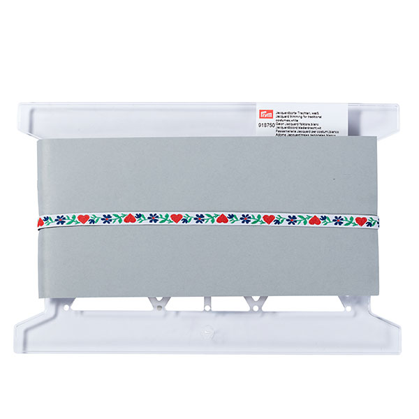 Тесьма жаккарловая с узором используется в качестве отделки на национальных и праздничных костюмах