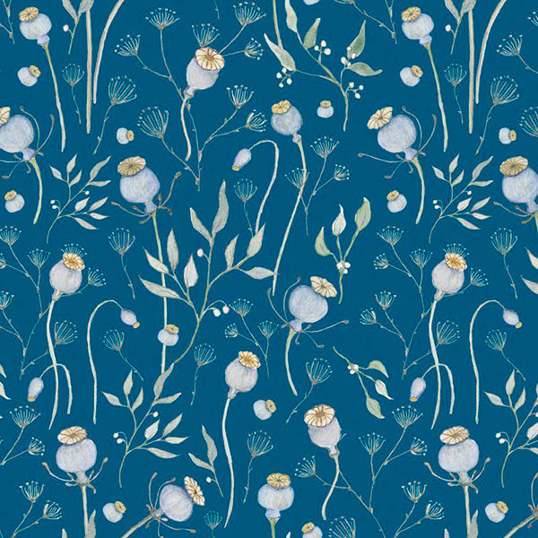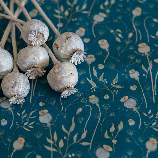 Ткань "Маки", ширина 145см, 100% хлопок, темно-берюзовый