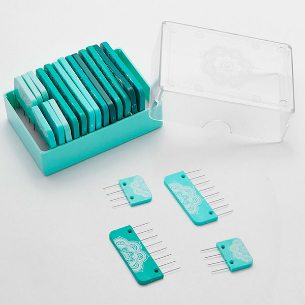Иглы фиксаторы для блокировки вязанных изделий "Mindful" (в наборе: 8шт ограничителей с 4 иглами, 12шт ограничителей с 8 иглами), пластик/сталь, бирюзовый