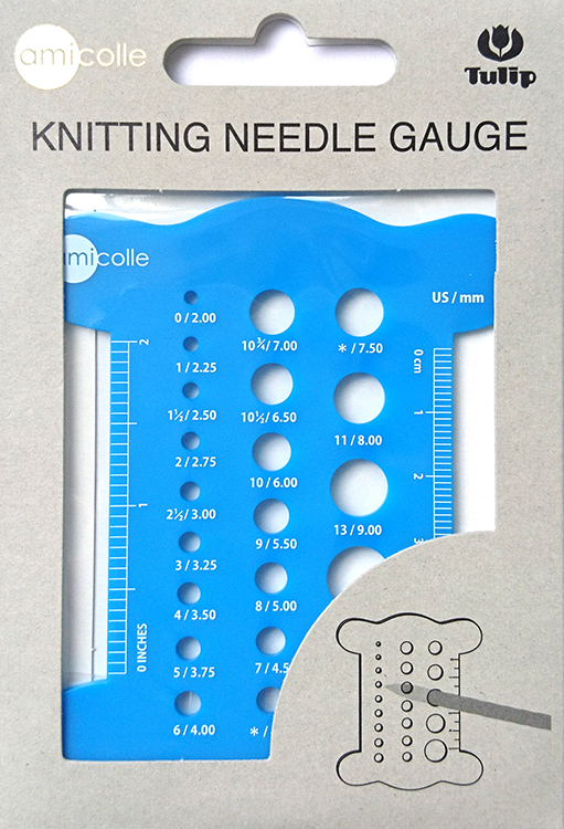 При помощи этой линейки можно легко определить диаметр спиц, а также плотность вязания полотна.