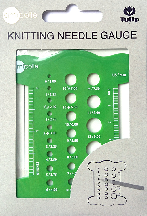 При помощи этой линейки можно легко определить диаметр спиц, а также плотность вязания полотна.
