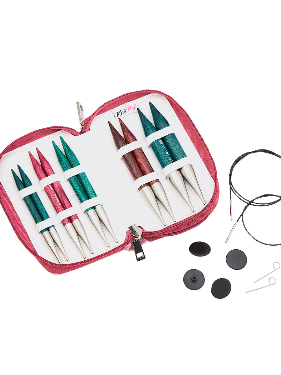 Набор "Chunky" спиц съемных "Dreamz" (в наборе: органайзер тканевый бордовый, спицы съемные 5 размеров (8мм/11,5см, 9мм/13см, 10мм/13см, 12мм/13см, 15мм/13см) - ламинированная береза, тросик поворотный 2шт (60см, 80см) - нержавеющая сталь с нейлоновым покрытием, заглушки 4шт – пластик, ключик для тросика 2шт – сталь, соединитель для тросиков 1 набор - сталь), многоцветный