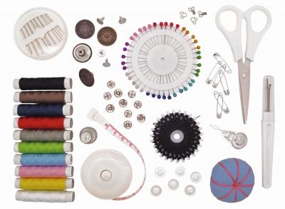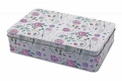 Набор для шитья в металлической коробке 19,8*12,7*4см (в наборе: швейные нитки, 100% полиэстер, длина 20м - 10шт, нитки на "Звездочке" из 100% полиэстера, рулетка сантиметровая длина 150см, наперсток, вспарыватель, булавки с жемчужной головкой - 40шт, ножницы, поговицы джинсовые - 4шт, иглы швейные - 16шт, подушечка для иголок, пуговицы для рубашки и блузки - 6шт, кнопки - 5шт, английские булавки - 6шт, застежки - 5шт, крючки и петли - 2шт, нитевдеватель)