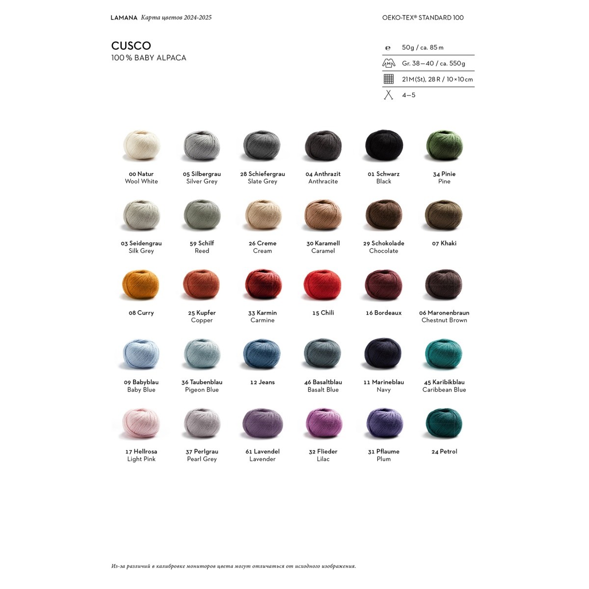 Пряжа Lamana-это сочетание изысканных волокон и высокого мастерства. Коллекция LAMANA SUPERLIGHT – для легких как перышко трикотажных изделий. CUSCO-это пряжа из 100% беби альпаки, скрученная в четыре нити. Мягкая и бархатистая на ощупь, она отличается нежным пушком и тонким блеском. CUSCO-для ценителей тепла! Даже в сильные морозы эта пряжа подарит вам уют и комфорт.Шерсть альпаки в семь раз теплее мериносовой, поэтому она идеально подходит для создания облегающих шарфов и платков. Свитера и кардиганы из этой пряжи выглядят стильно и элегантно, пряжа с легким блеском красиво струится. CUSCO можно стирать в машинке в режиме для шерсти при низкой холодной температуре. Используйте нейтральное средство для стирки шерсти в минимальной дозировке!!! После стирки аккуратно высушите изделие, избегая прямых солнечных лучей. Для размера М потребуется 550 грамм пряжи. Рекомендуемые спицы для вязания №4.0 - 5.0