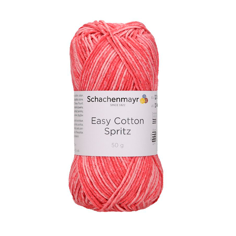 EASY COTTON SPRITZ— это пряжа от немецкого бренда Schachenmayr, известного своей высококачественной пряжей для вязания и рукоделия. Пряжа Easy Cotton Spritz-отличный выбор для вязальщиц, которые ищут качественную хлопковую пряжу для своих проектов. Она состоит из натурального хлопка и обладает мягкой текстурой, хорошей воздухопроницаемостью и гигроскопичностью. Это делает её идеальной для весенне-летних изделий: одежды, аксессуаров и декора. Название "Spritz" намекает на интересную текстуру или метод окраски. Эффект распыления краски создаёт плавные переходы цвета без повторов, придавая пряже летний элегантный оттенок. Округлая структура нити позволяет создавать как ровные, так и текстурированные узоры, что делает её универсальной для различных проектов. Easy Cotton Spritz подходит для вязания топов, поло, пуловеров, сумок и элементов декора. Она комфортна в носке и проста в уходе. Классическая, красиво скрученная пряжа отлично сохраняет форму. Её рекомендуется стирать при температуре 40 °C и сушить горизонта