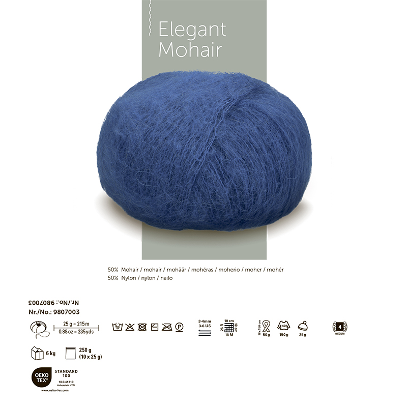 ELEGANT MOHAIR — это пряжа от немецкого бренда Schachenmayr, известного своей высококачественной пряжей для вязания и рукоделия. Elegant Mohair— это сочетание насыщенных цветов, изысканного вида и приятной легкости. Пряжа с 50% мохера обладает мягкой и тонкой структурой, что делает ее экономичной в вязании. Результат с Elegant Mohair получается легким, как перышко.Благодаря мохеровым волокнам, цвета получаются яркими и гармоничными, которые сочетаются между собой. Вязание двойной нитью усиливает пушистость, делая изделие воздушным и уютным. Для ухода рекомендуется ручная стирка деликатными средствами и горизонтальная сушка в тени. На модель М-46 (46 размер) потребуется всего 150 грамм пряжи. Рекомендуемые спицы: 3-4 мм.