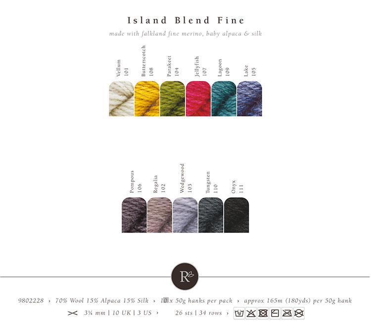 Island Blend Fine /Айленд Бленд Файн/ пряжа Rowan (70% шерсть, 15% альпака, 15% шелк), 10*50г/165м