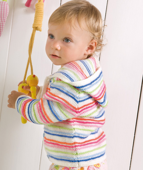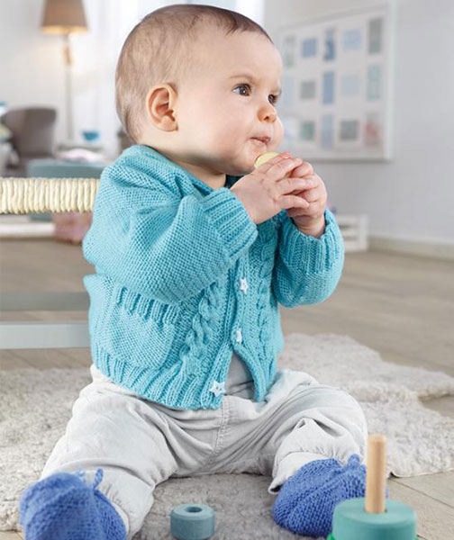 Легкая в уходе за изделиями, эта пряжа в 4 сложения, состоящая на 100% из мериносовой шерсти, согреет вашего малыша даже в самые холодные дни.