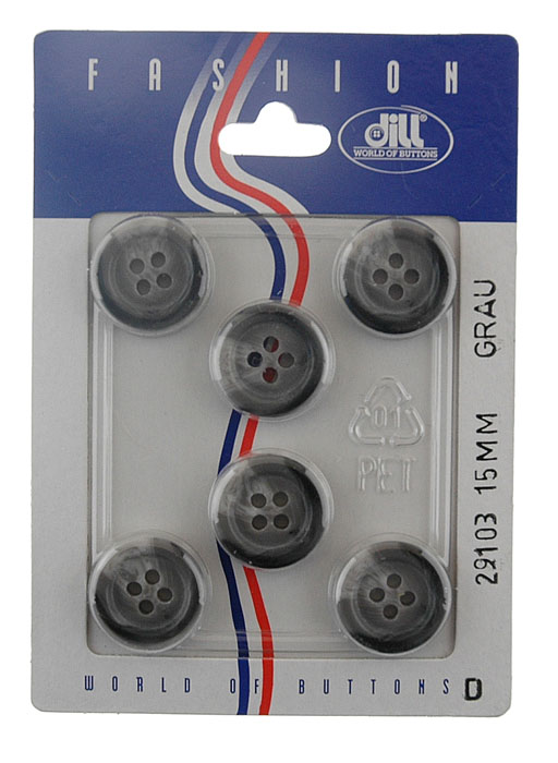 Пуговицы, размер 15мм, пластик, серый, 6шт в упаковке