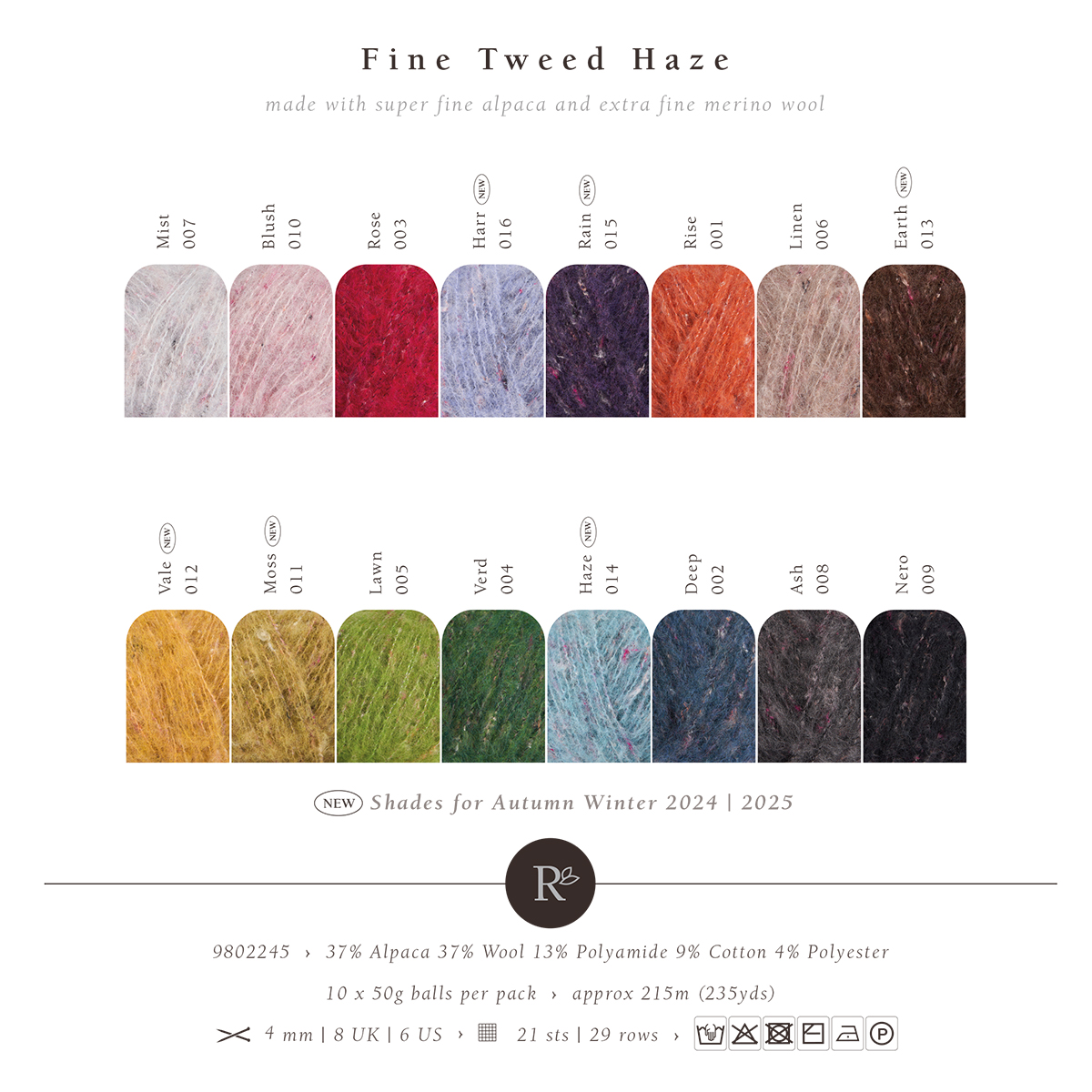 Rowan-британский премиальный бренд пряжи высокого качества с натуральными составами. Fine Tweed Haze -изысканная тонкая пряжа с твидовым эффектом и легкой дымкой. Тонкая шерсть мериноса из Южной Африки, легкая супертонкая альпака с характерными твидовыми вкраплениями из хлопка. Отлично держит форму и подходит для ажурных и рельефных узоров. Палитра включает приглушенные, сложные оттенки с яркими акцентами. Пряжа произведена в Италии и отлично подходит для невесомых кардиганов, свитеров, шалей, аксессуаров, детской одежды и легких демисезонных изделий. Хорошо смотрится как в многоцветных, так и в однотонных проектах. Требует деликатного ухода, стирать вручную в прохладной воде с мягким средством. Сушить в горизонтальном положении, избегая растяжения. Перед началом работы свяжите и постирайте образец, так как твид может немного изменить размер после стирки.Для размера М понадобится 400-500 грам пряжи. Рекомендуемые спицы: №3–4.