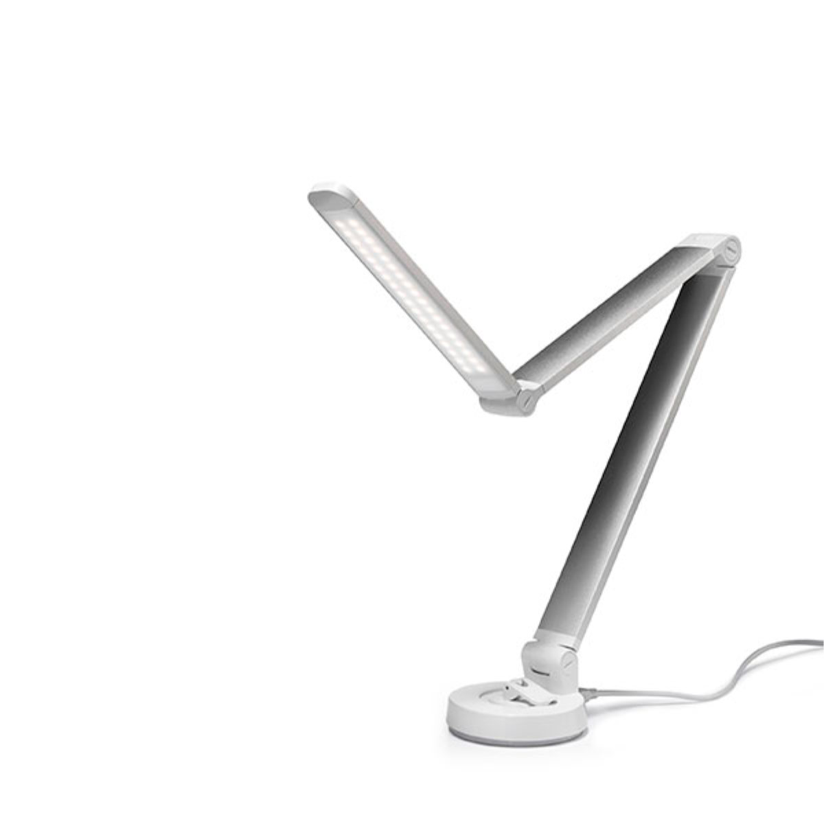 Светодиодная настольная лампа с основанием на присосках, с 36 светодиодами, 3 уровня яркости, кабель USB, 220в адаптер-штемпель, металл/пластик, белый/серебристый
